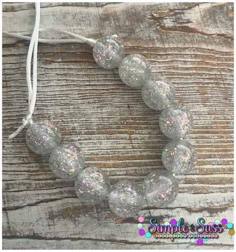 • 16mm Solid Silver Glitter Bubblegum Bead Necklace