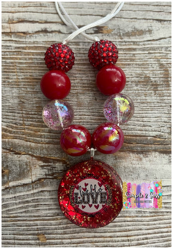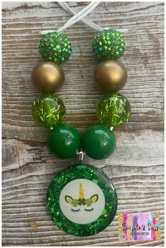 Lucky Unicorn Bubblegum Bead Necklace with Resin Pendant