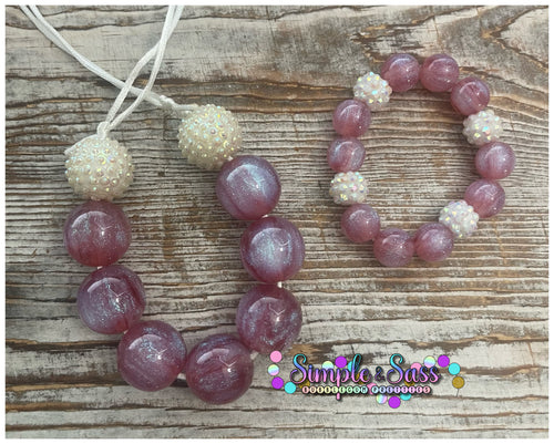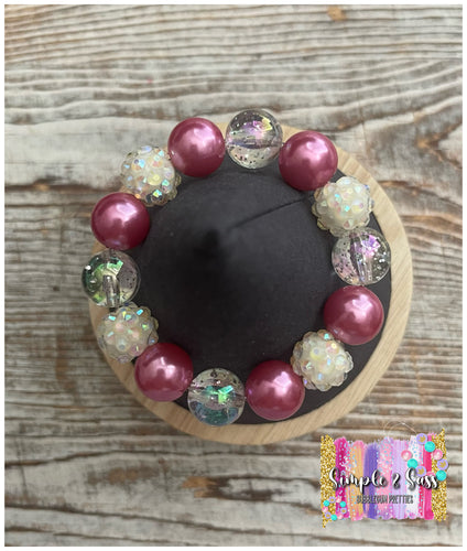 Mauve & White Mix Bubblegum Bead Bracelet