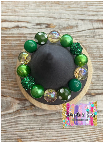 OOAK Green & Gold Mix Bubblegum Bead Bracelet