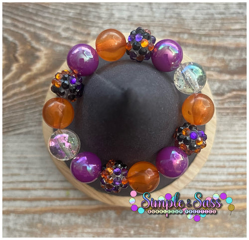 Orange & Purple Halloween Mix Bubblegum Bead Bracelet