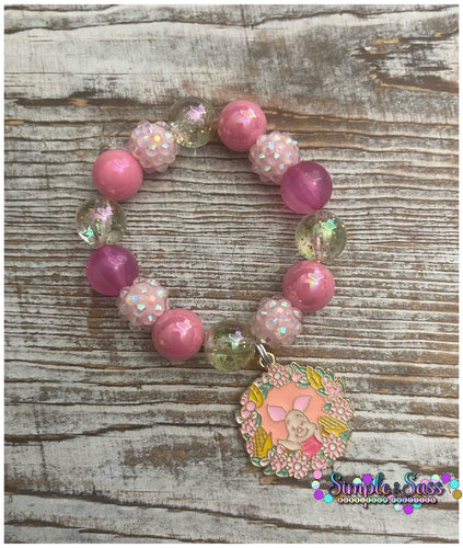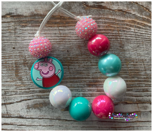 Pig Bubblegum Bead Necklace with Silicone Focal