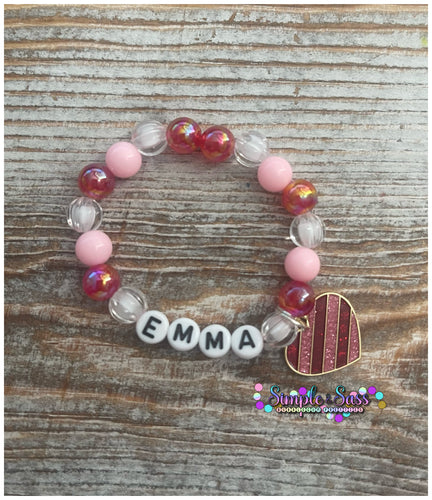 Pink & Red Custom Name 8mm Bracelet with Striped Heart Charm