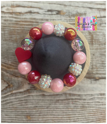 Pink & Red Mix Bubblegum Bead Bracelet with Red Silicone Heart