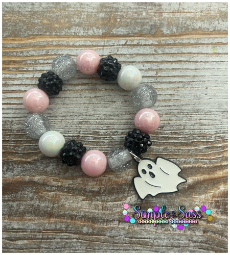 Pink & Silver Mix Ghost Bubblegum Bead Bracelet with Charm