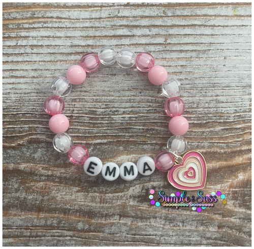 Pink & White Custom Name 8mm Bracelet with Heart Charm