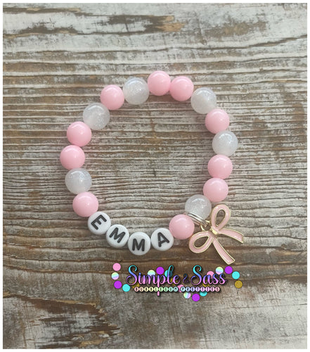 Pink & White Custom Name 8mm Bracelet with Bow Charm