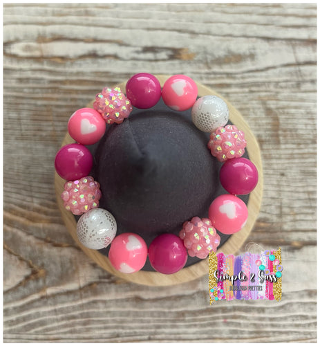 Pink Hearts & White Mix Bubblegum Bead Bracelet
