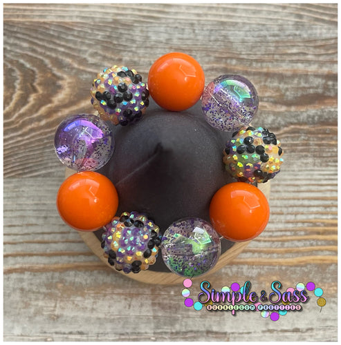 Purple & Orange Halloween Mix Jumbo Bead Bubblegum Bead Bracelet