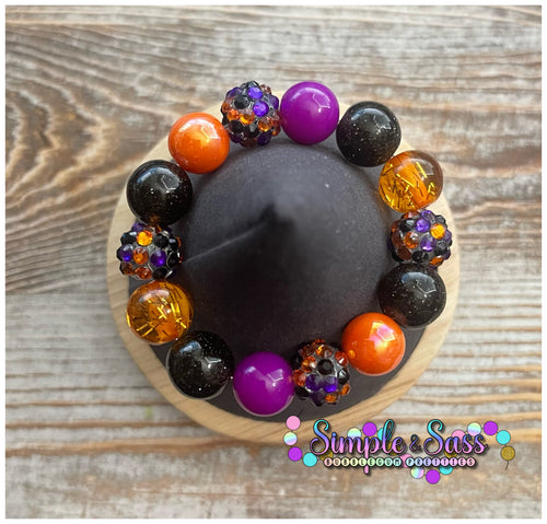 Purple, Black & Orange Mix Bubblegum Bead Bracelet
