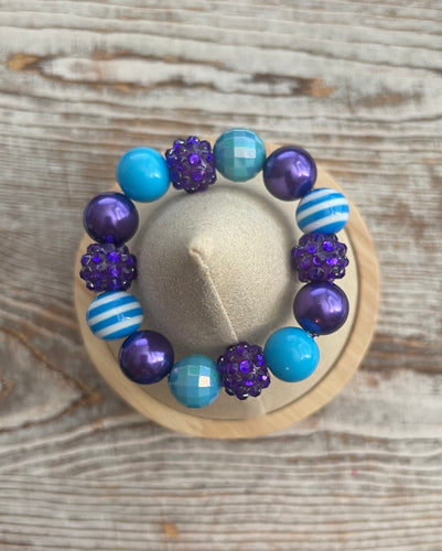 Purple, Blue & Gold Mix Bubblegum Bead Bracelet