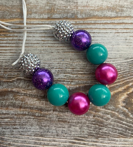 Purple/ Fuchsia/Turquoise Mix Bubblegum Bead Bracelet