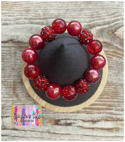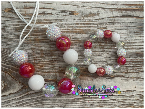 Red & White Mix Jumbo Bead Bubblegum Bead Bracelet with Red Focal Bead